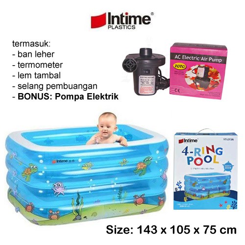 Harga intime kolam baby spa kotak 4 ring / pool renang anak bayi + pompa. Abielbabyshop akan mengirimkannya untuk anda berat kirim 5 kg harga 1 paket rp. Baleomol adalah marketplace yang mempertemukan orang yang sudah mempunyai produk (supplier) dan orang yang tidak mempunyai produk (dropshipper) untuk dijual kembali ke platform lain walaupun tanpa harus stok produk. Diskon 7% untuk pembelian produk grosir kolam renang anak swimming original murah free pompa mainan bebek kolam spa bayi kolam bayi spa bestway surabaya high quality best seller di lapak imporshop. Jual beli online aman dan nyaman hanya di tokopedia.